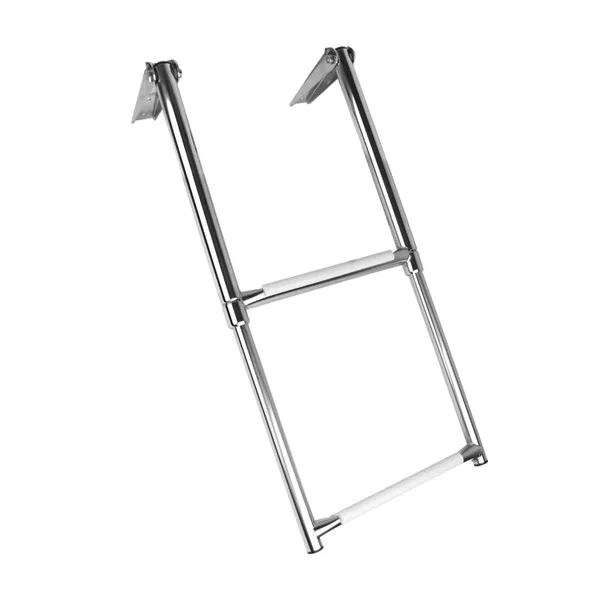 This 2 steps telescopic boat ladder is made of 304/316 stainless steel and is mounted on a platform.