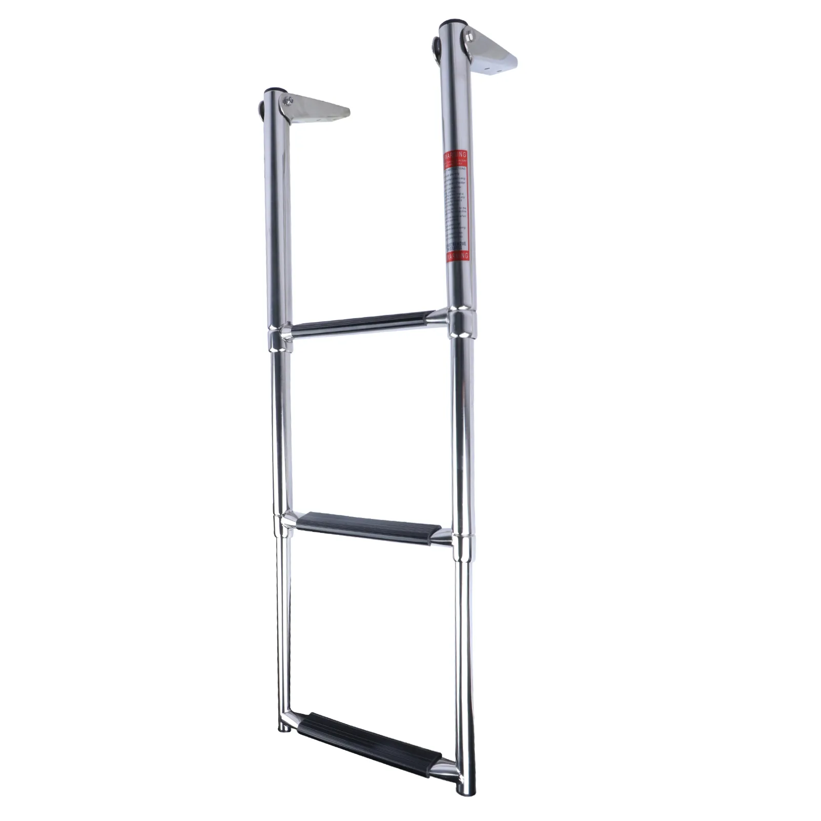 This 3 steps telescopic boat ladder is made of 304/316 stainless steel and is mounted on boat platform.