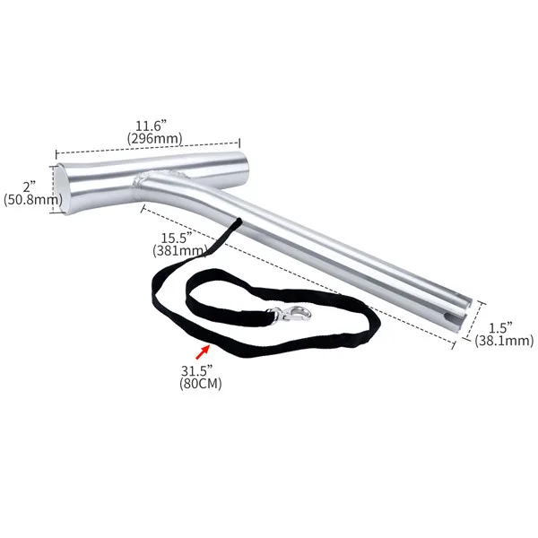 This outrigger fishing rod holder is made of aluminum.